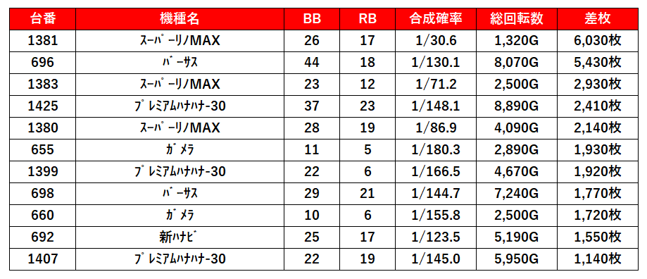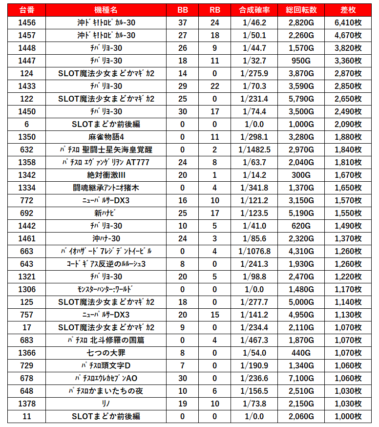 1,000枚以上出た台だけピックアップしたけどこんなにある‼