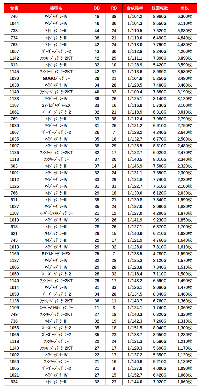 この結果からも5の日はジャグだけじゃない!Aタイプもあるんだぜ‼って言えるんじゃない?