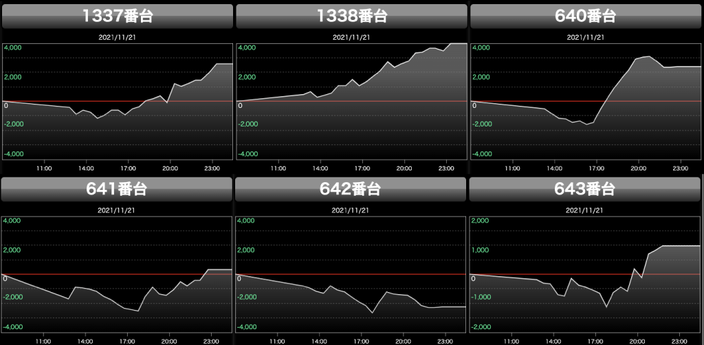 ということで総差枚10万枚超でお祭り状態の11月21日でした。