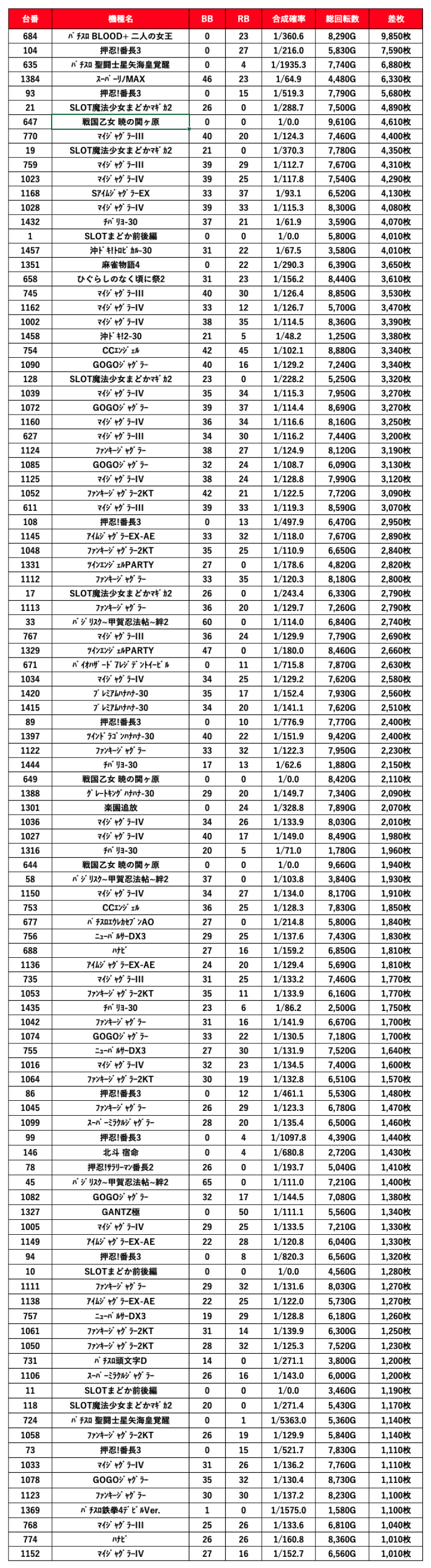 平均差枚数 1,030枚
