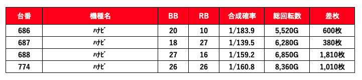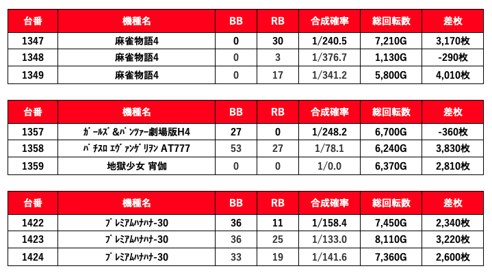 3台並び大量投入は1の日や7の日などの強化日の傾向だね。