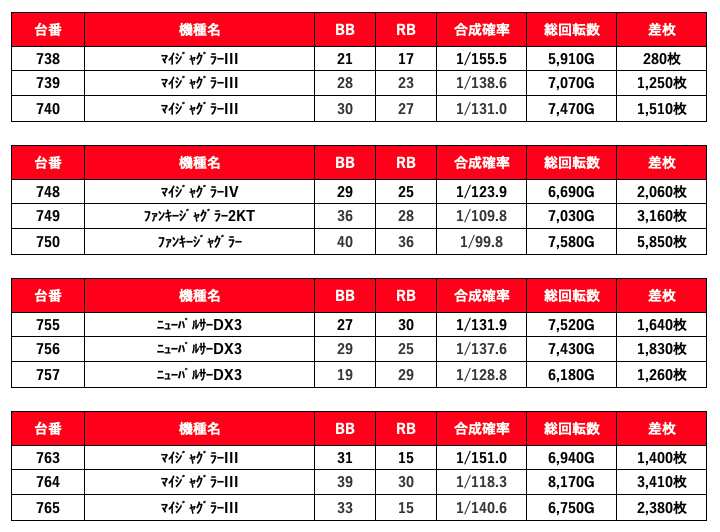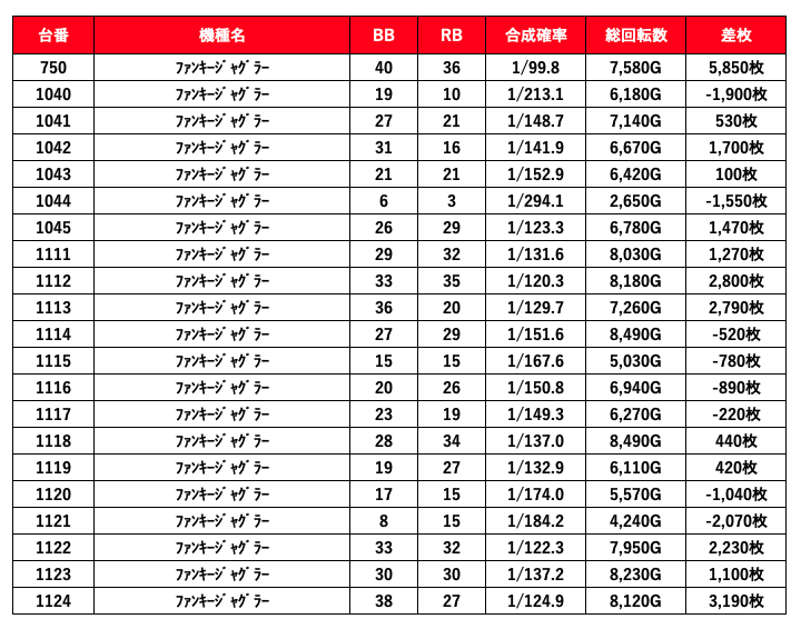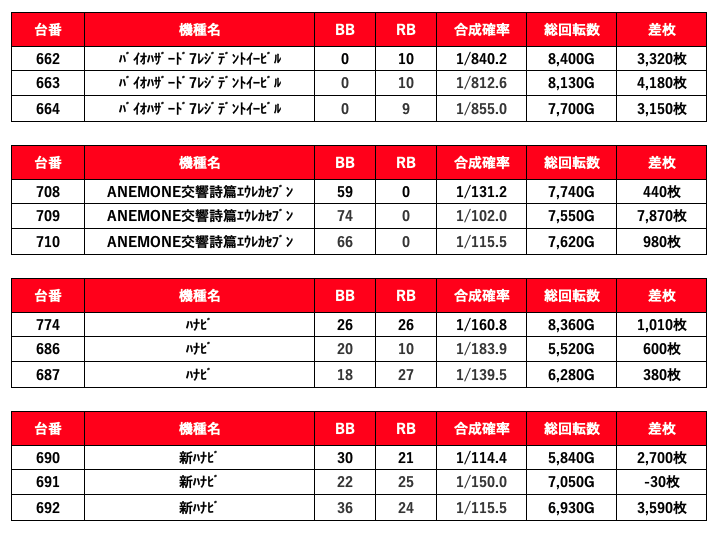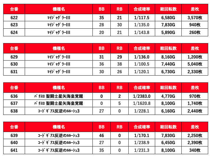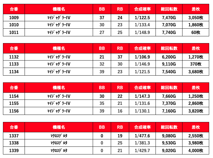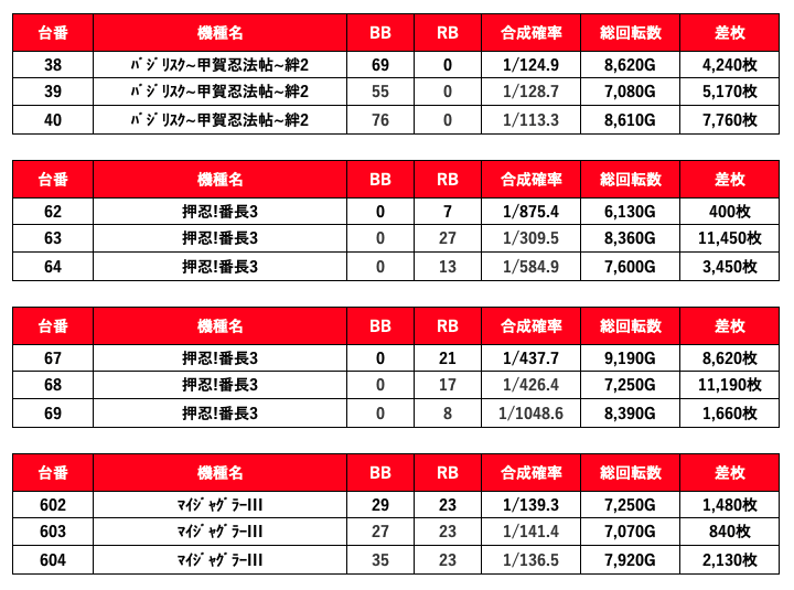 2021年11月21日(日)エスパス新宿歌舞伎町結果データ 総差枚数+100,600枚