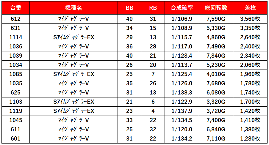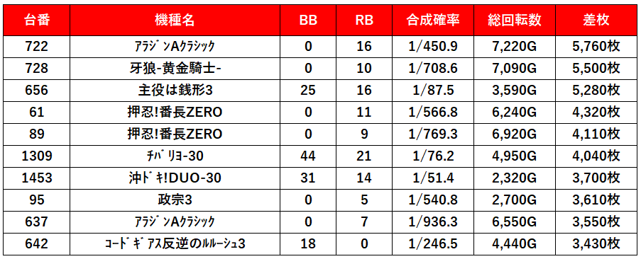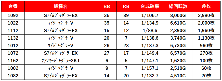 6,500枚超え筆頭に3,000枚が2台としっかりニブイチ以上がプラスになってるね。