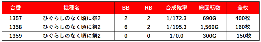 2021.02.08(火)エスパス新宿歌舞伎町結果データ