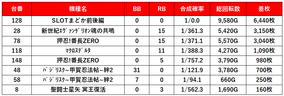 まどかや絆2で回ってない台があったのが惜しい…