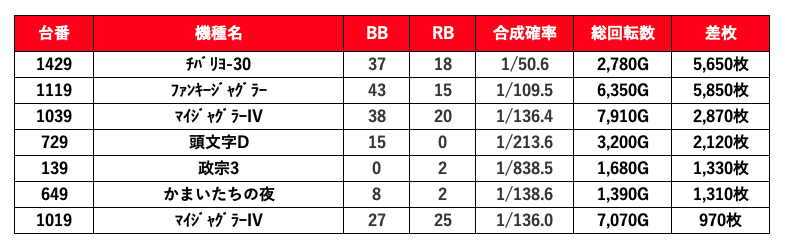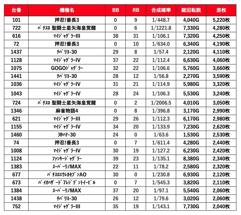 ただこの店が数字関連に要注意&救済の単品多いてわかってて勝ちを拾えたユーザーも多いはず。