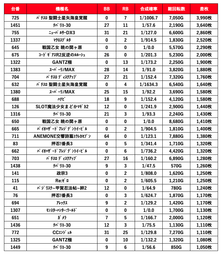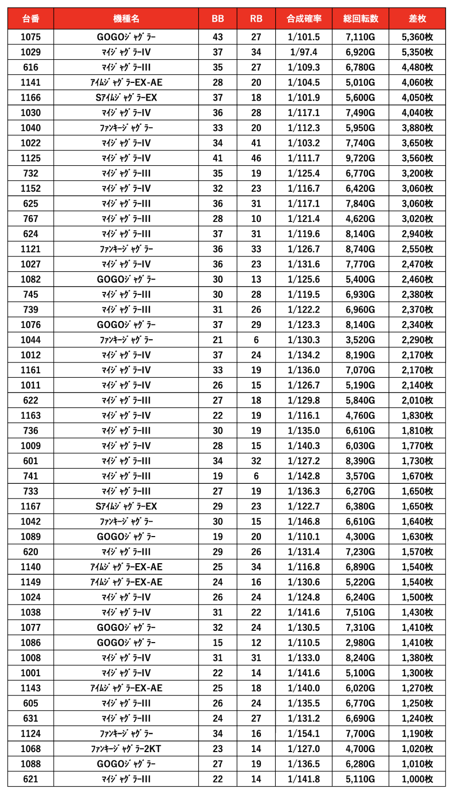 まあまあいい感じだけど、埋もれてる台は他にも結構ありそうな印象だった。