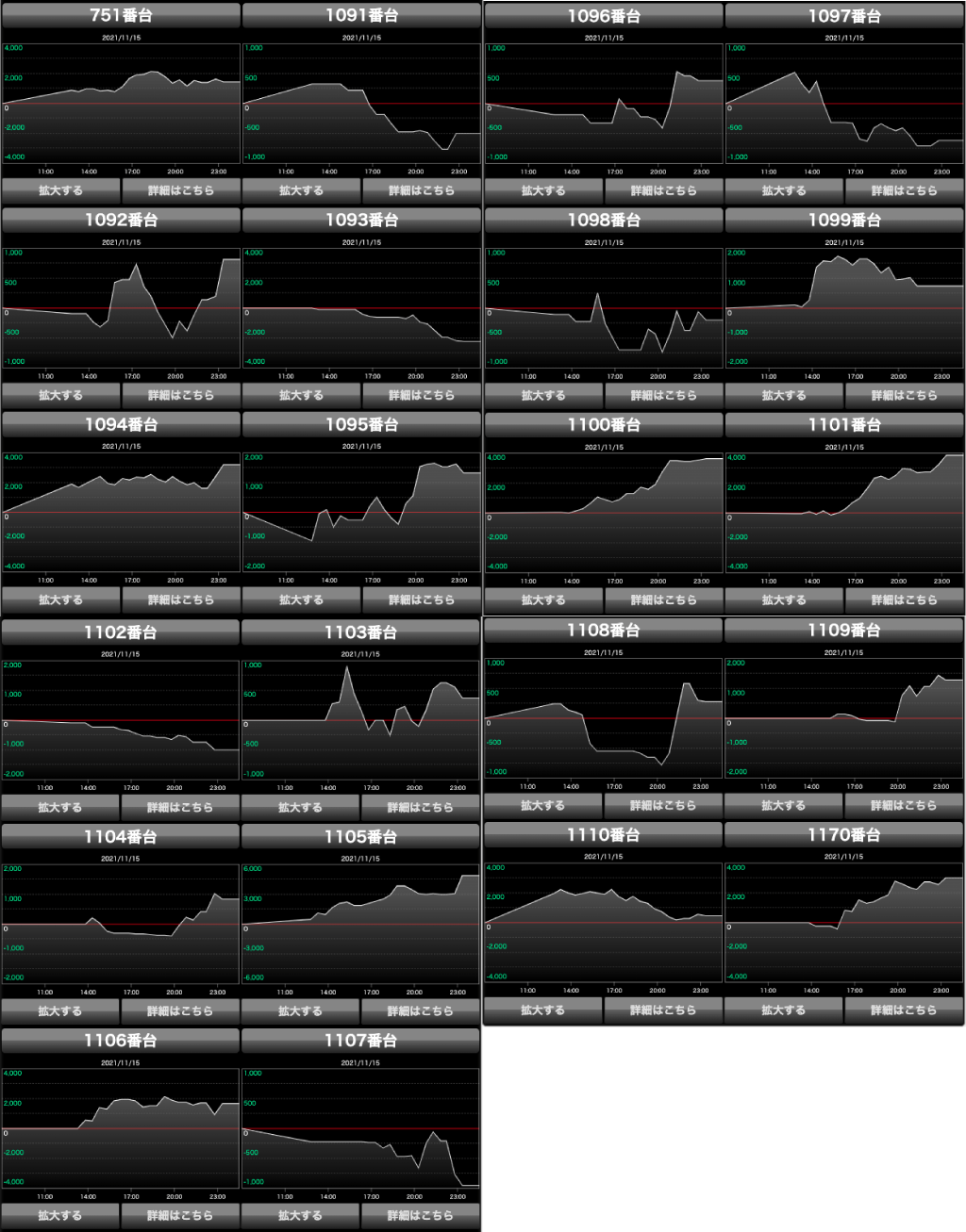 2021年11月15日(月)エスパス新宿歌舞伎町結果データ 総差枚数+26,400枚