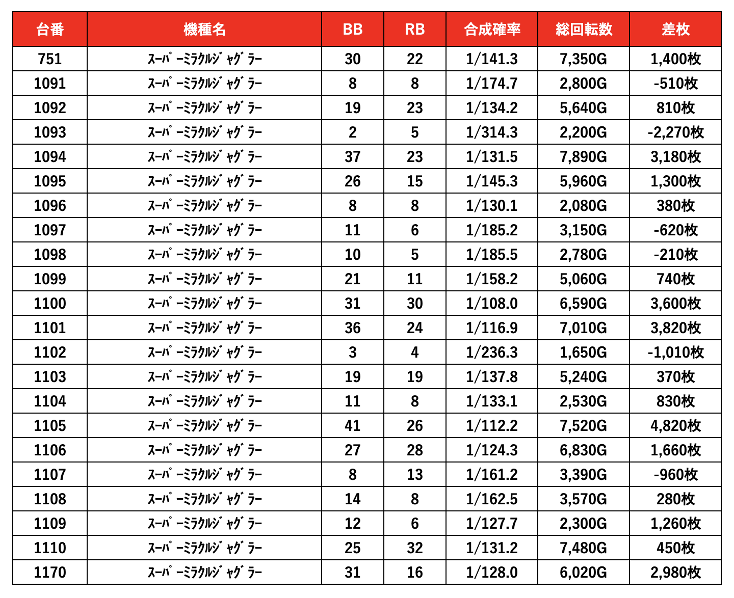 ⑤の日はとりあえずジャグ行っときゃ間違いなし。
