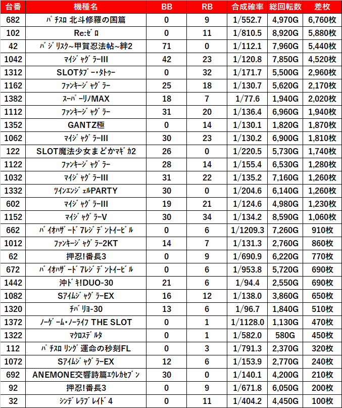 3機種共に回転数が少ない足りない台も多かったので後ヅモチャンスだったのでは!?