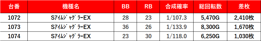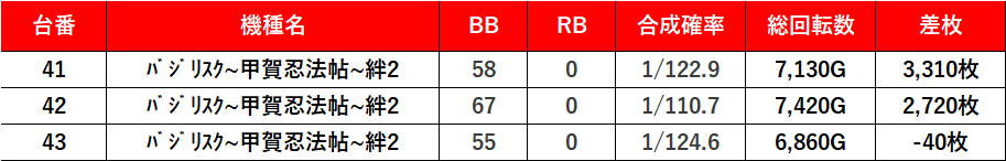 2021.01.08(土)エスパス新宿歌舞伎町結果データ 総差枚:+123,650枚