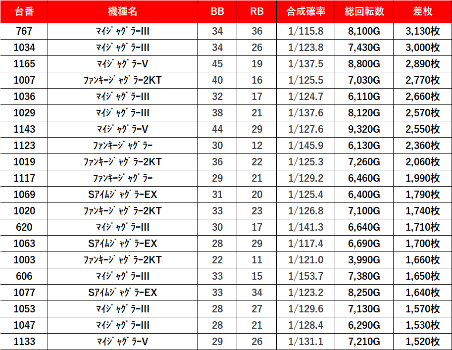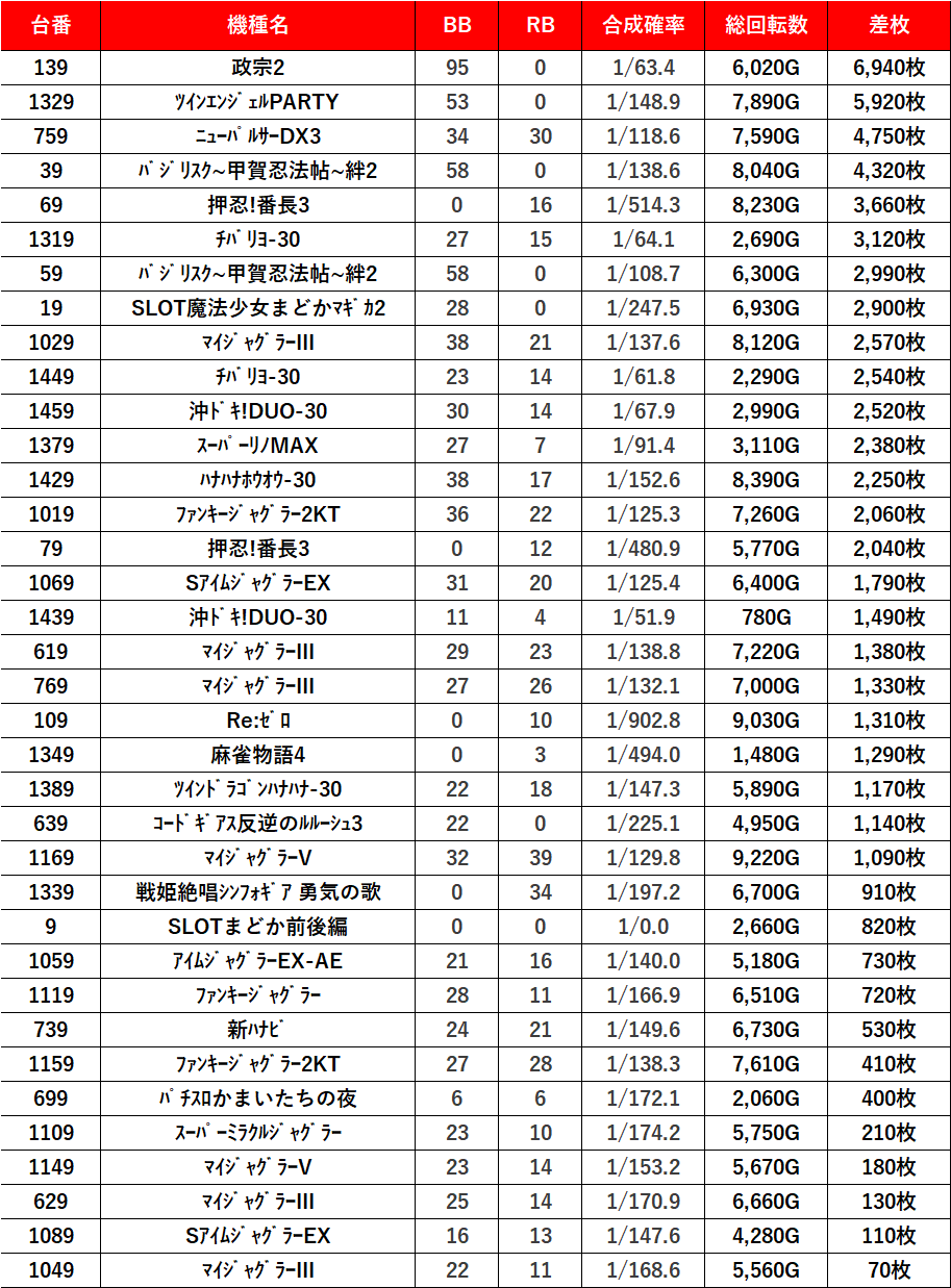 20スロ全台の総差枚数+12万枚OVERは見事👏