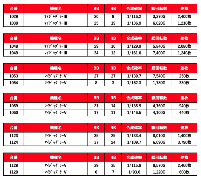 2022.01.12(水)エスパス新宿歌舞伎町結果データ