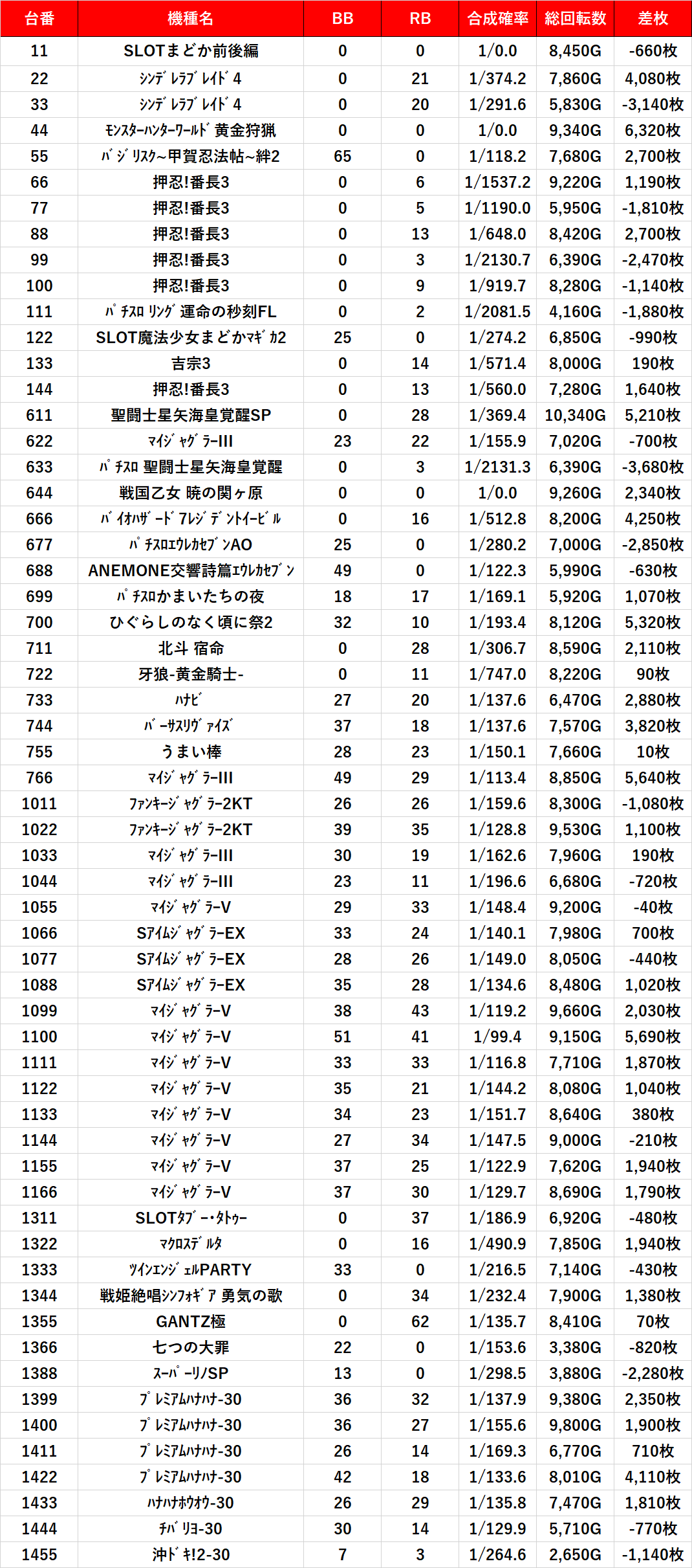 その他単品:差枚4.600枚超えピックアップ