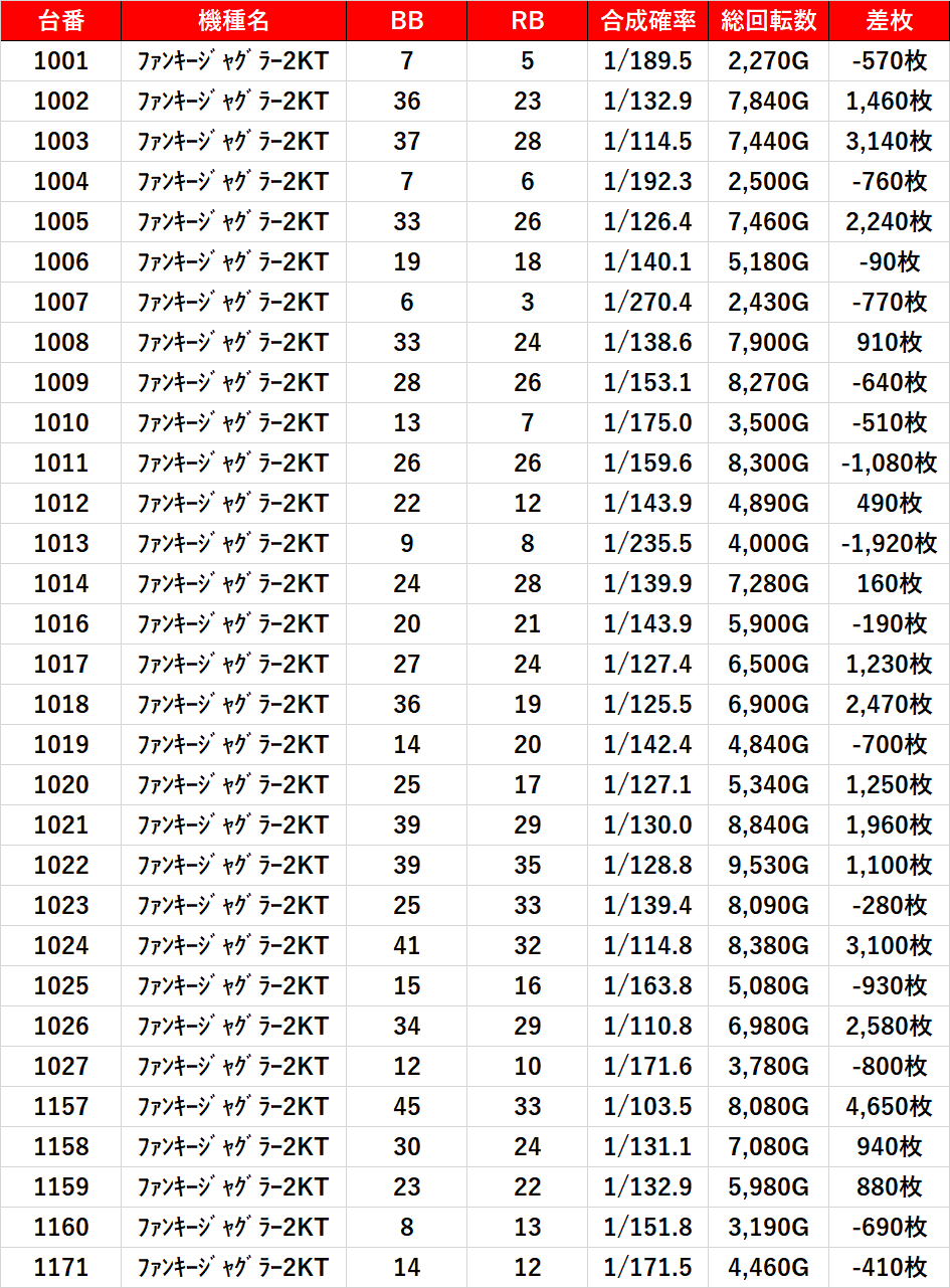 ファンキー2はプラス台のみグラフを掲載してみたけど