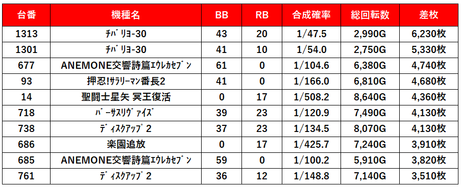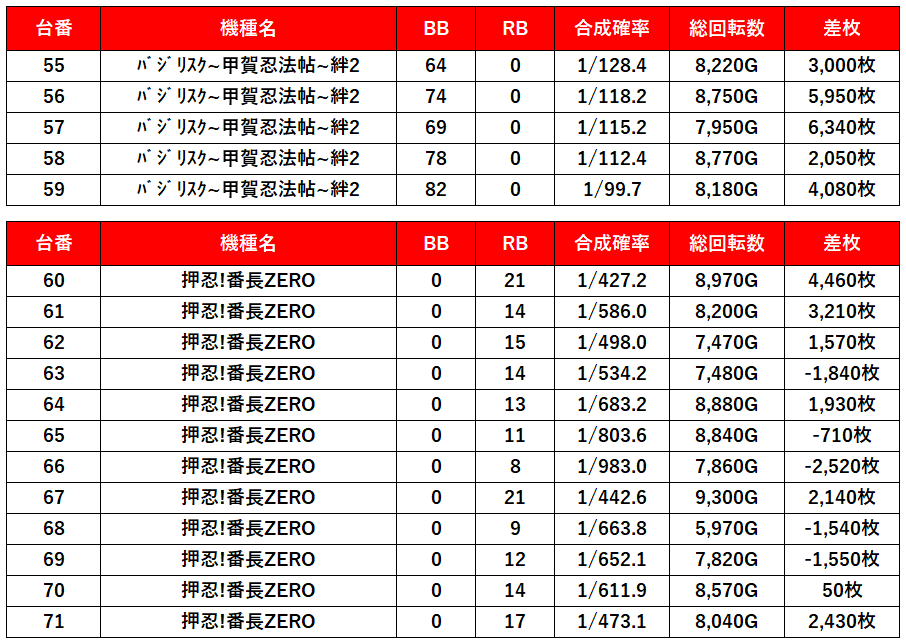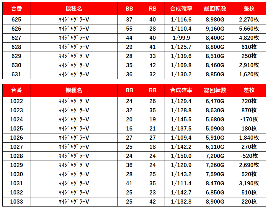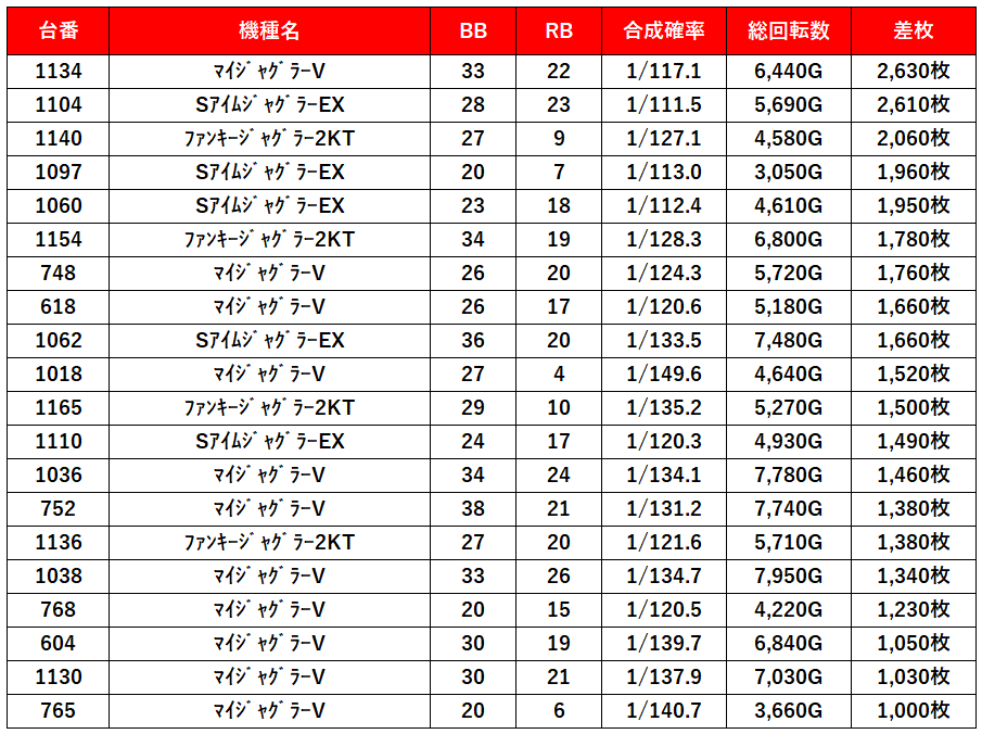 | 平均差枚数 | 3,100枚 |