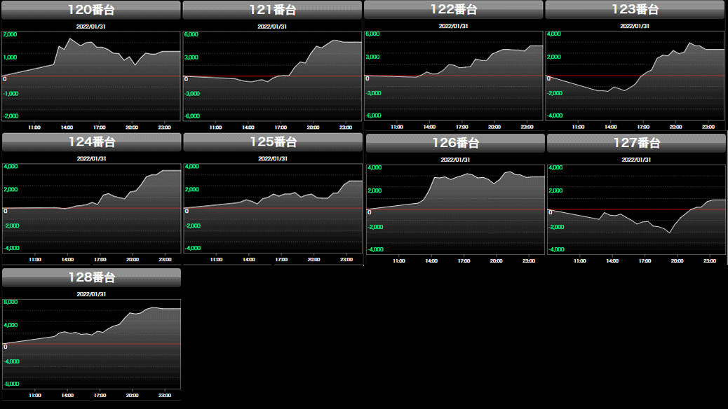 2022年1月31日(月)エスパス新宿歌舞伎町結果データ 総差枚:+23,100枚