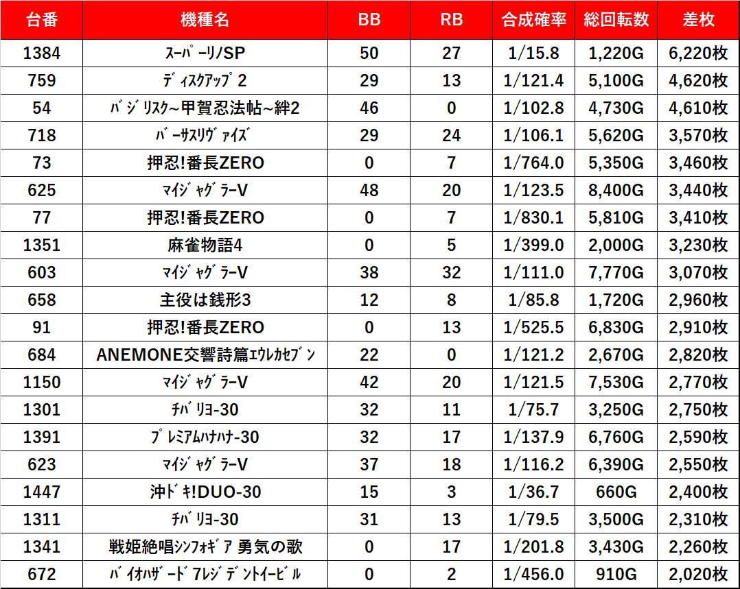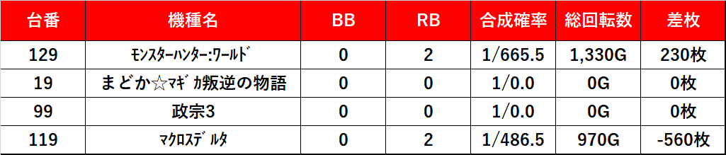 2022.02.18(金)エスパス新宿歌舞伎町結果データ