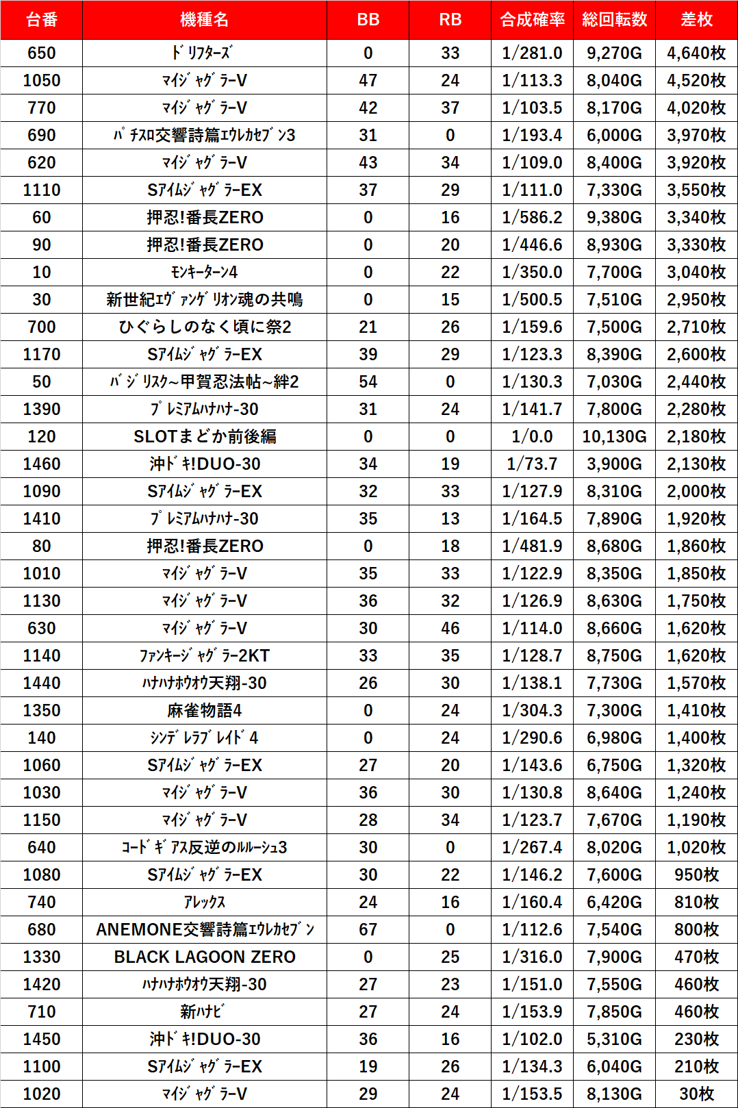 土曜部は末尾の仕掛けを必ず1つ以上は確認で来ているので怪しい動きをする台は、台番号にも要注意だ!