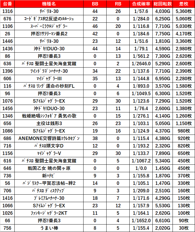 3機種共に回転数が少ない足りない台も多かったので後ヅモチャンスだったのでは!?