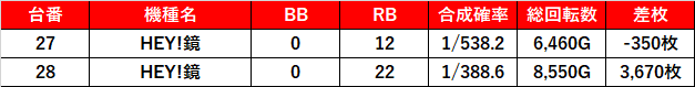 鏡もサラ番2も1/2でしっかりプラス差枚数!