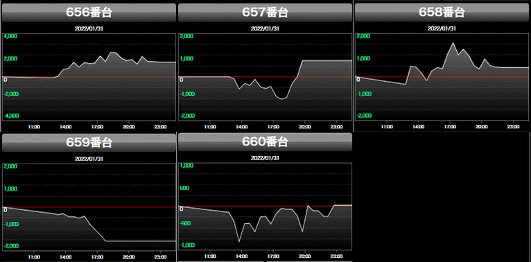 2022年1月31日(月)エスパス新宿歌舞伎町結果データ 総差枚:+23,100枚